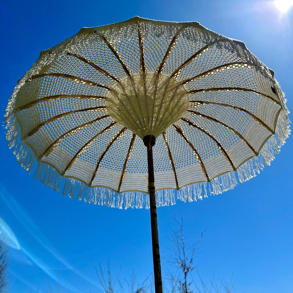 This item is available on pre-order and will ship in November 2025. We’re delighted you wish to reserve one of our handmade parasols — each one is being carefully crafted by our artisans in Bali. By pre-ordering now, you secure your place in our limited upcoming shipment.
